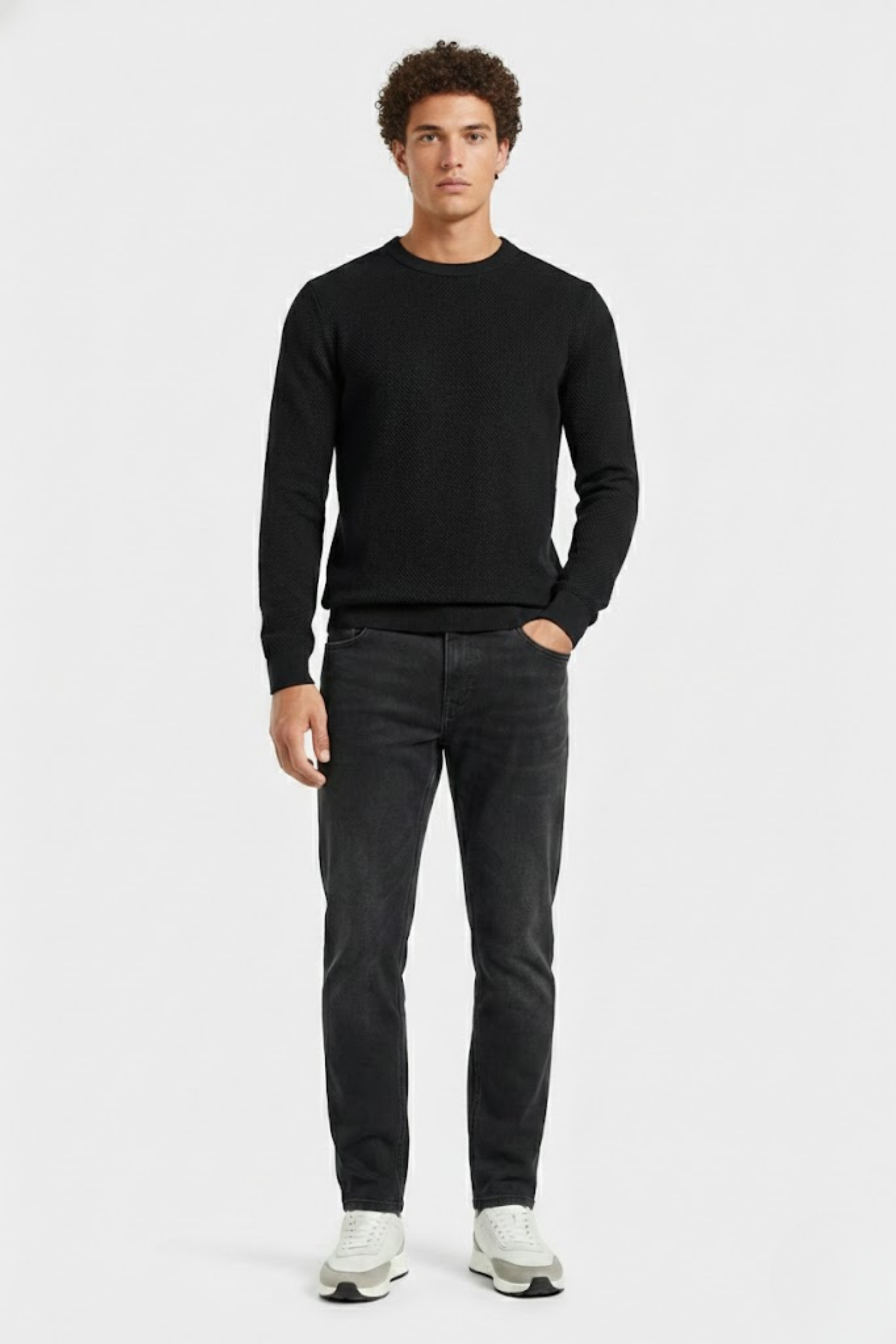 Featuring a clean, modern slim silhouette, Essential delivers a refined fit that feels structured without sacrificing comfort. The subtle stretch denim moves naturally with the body, maintaining a sharp profile from morning to night. Finished with clean lines and a minimal aesthetic, these jeans transition effortlessly from casual settings to elevated everyday wear.
